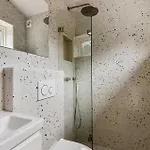 Badrumsfaciliteterna i den strandnära villan inkluderar också en dusch och en tvättmaskin.